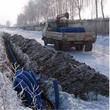Укладка защитных труб 'Рувинил' в зимний период