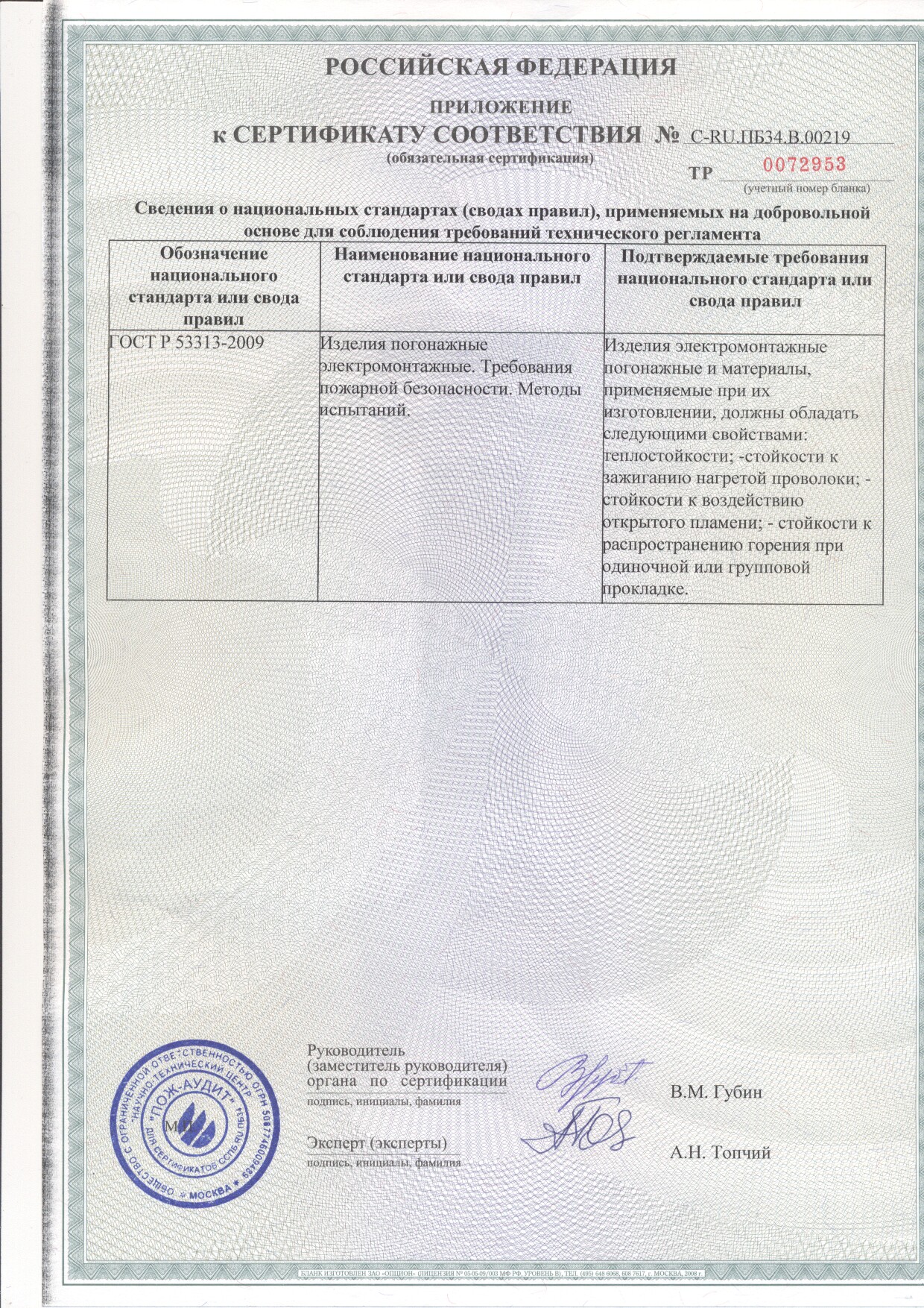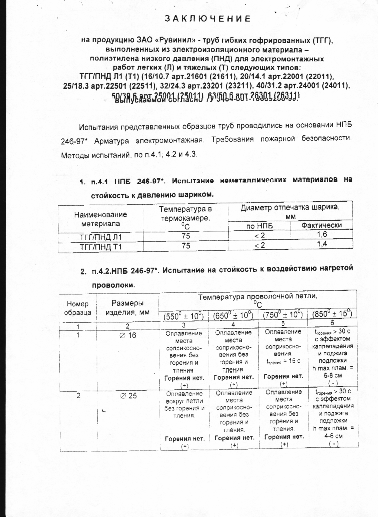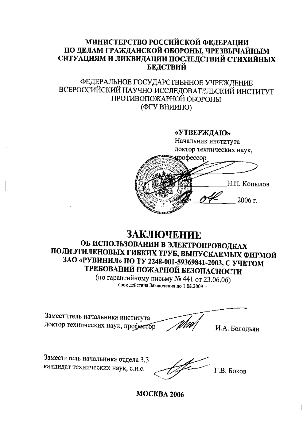 Заключение МЧС (PDF 5Мб) ОБ ИСПОЛЬЗОВАНИИ В ЭЛЕКТРОПРОВОДКАХ
