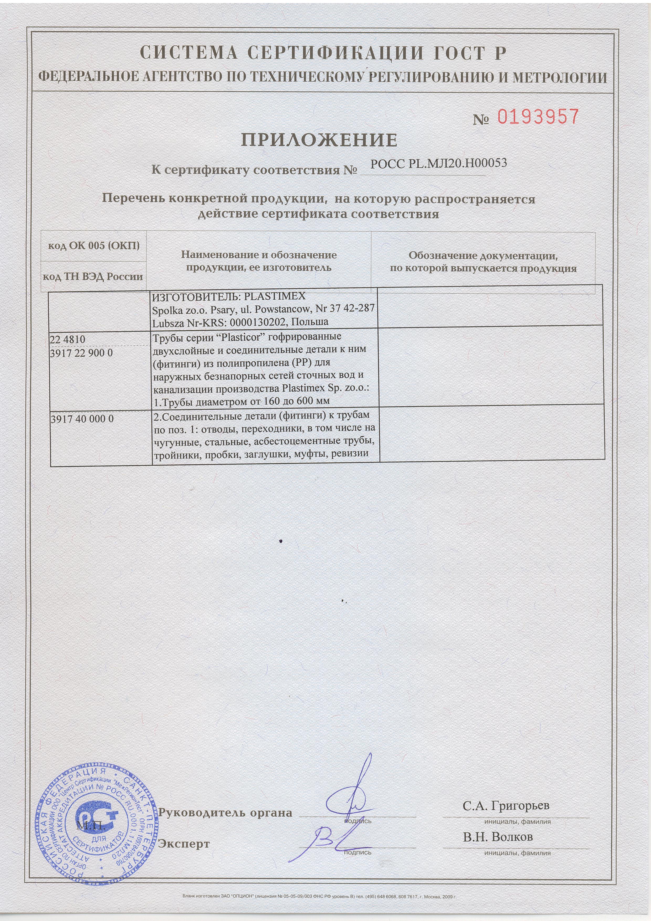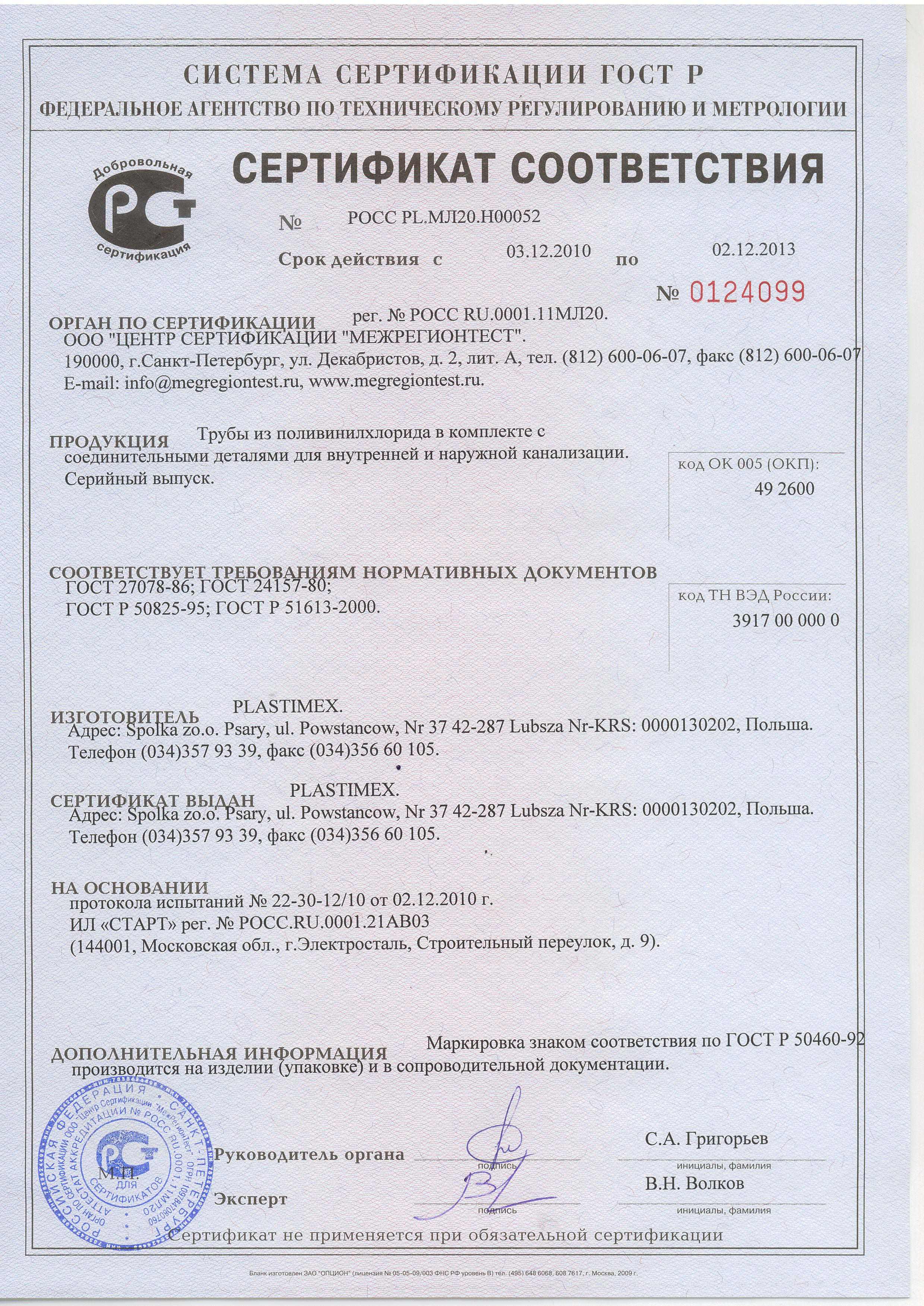 Соответствия 2 Plastimex Трубы и фитинги внутренняя и наружная канализация 03.12.10 02.12.13