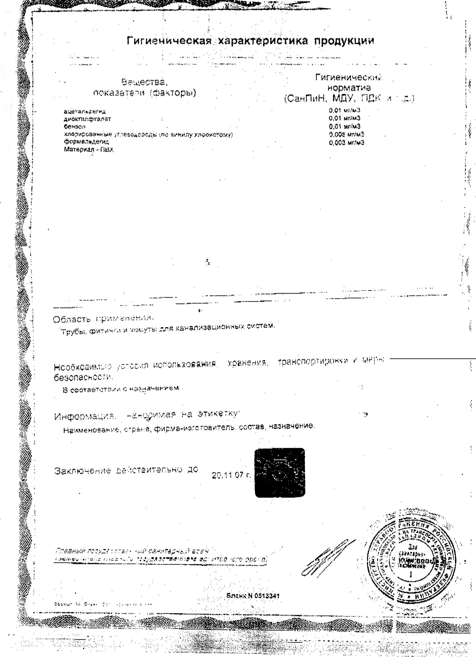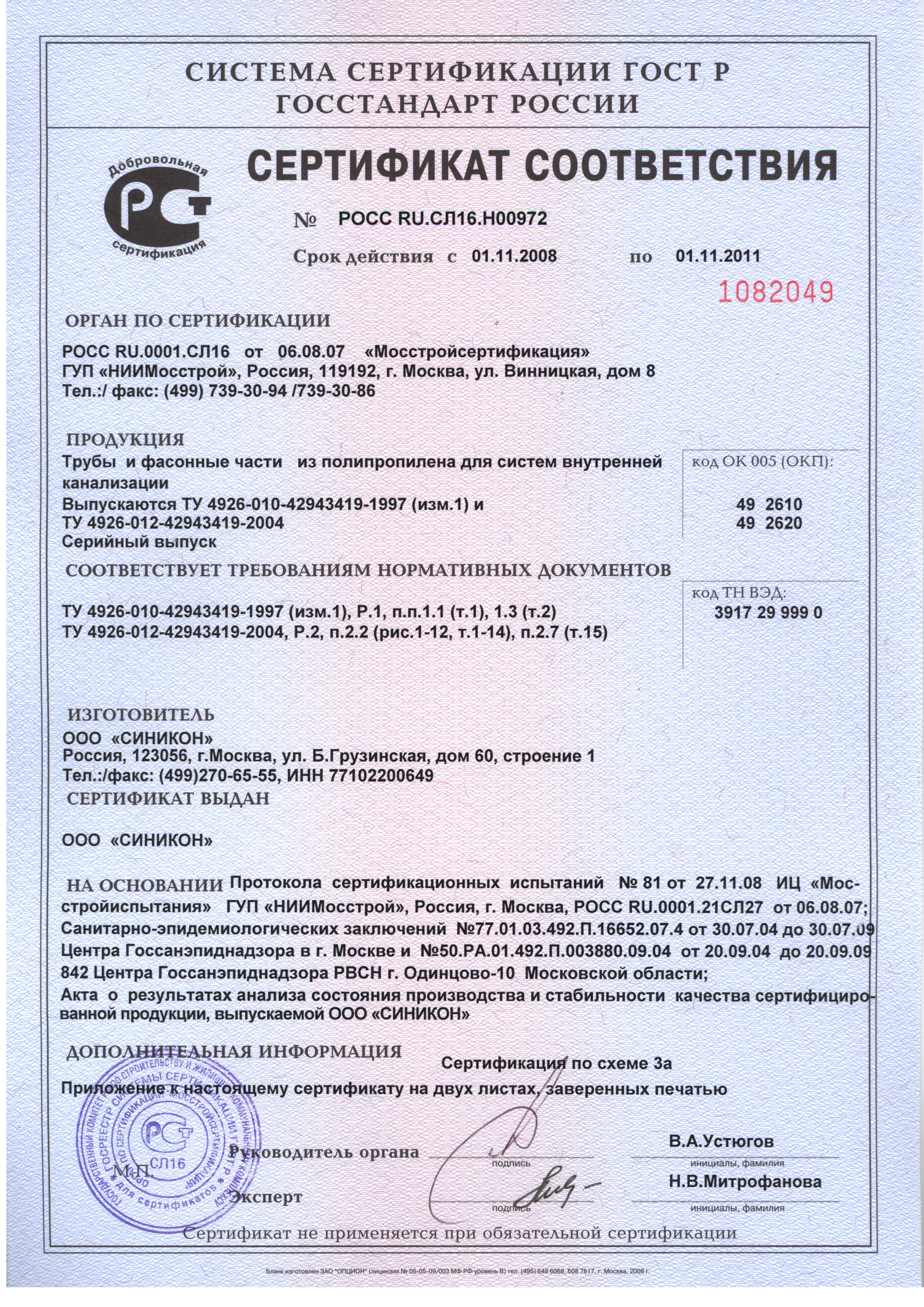 Гигиенический Синикон Трубы и фитинги внутренняя канализация 01.11.08 01.11.11