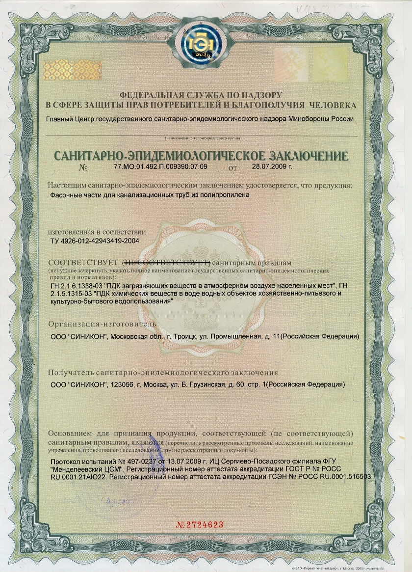 Гигиенический Синикон фитинги универсал канализация 28.07.09 15.09.14