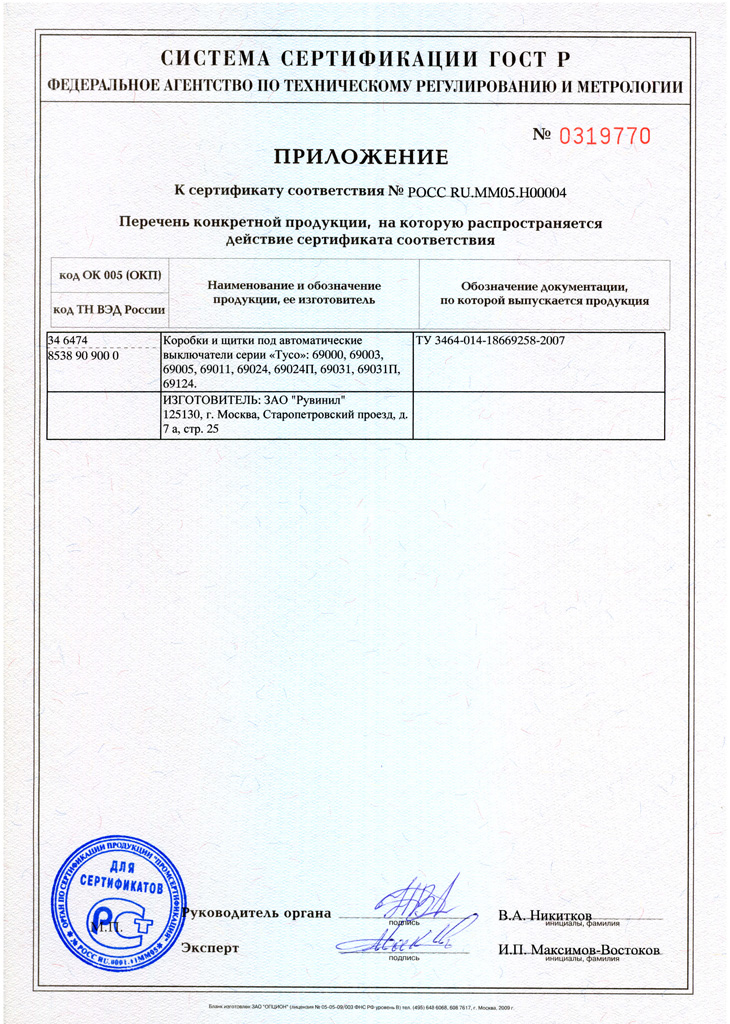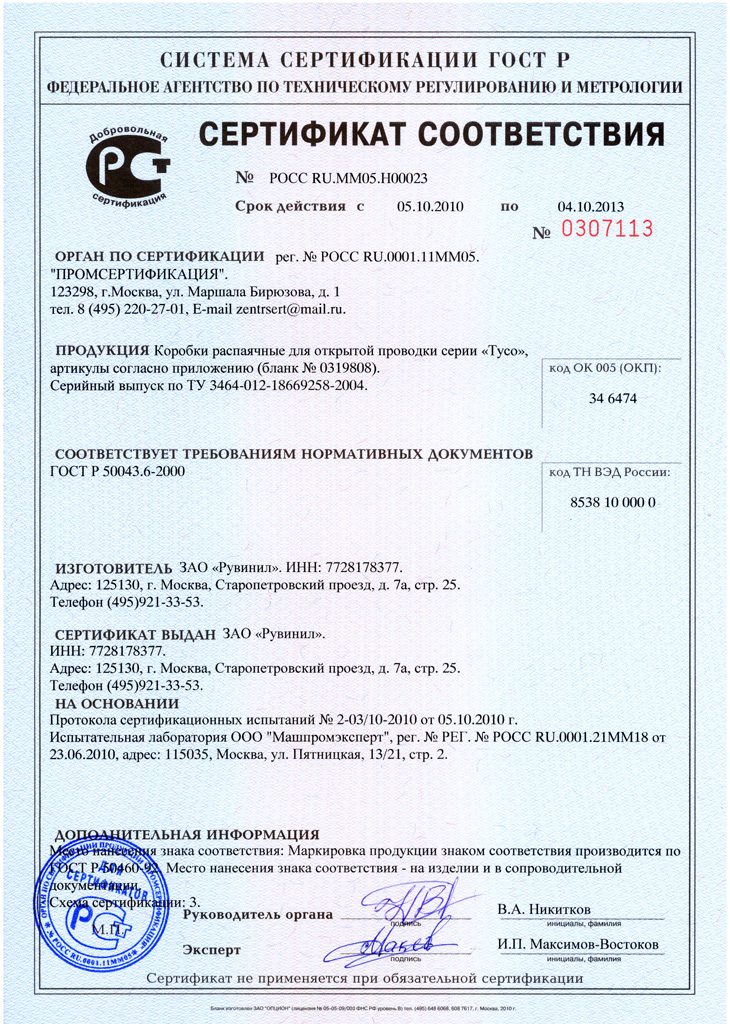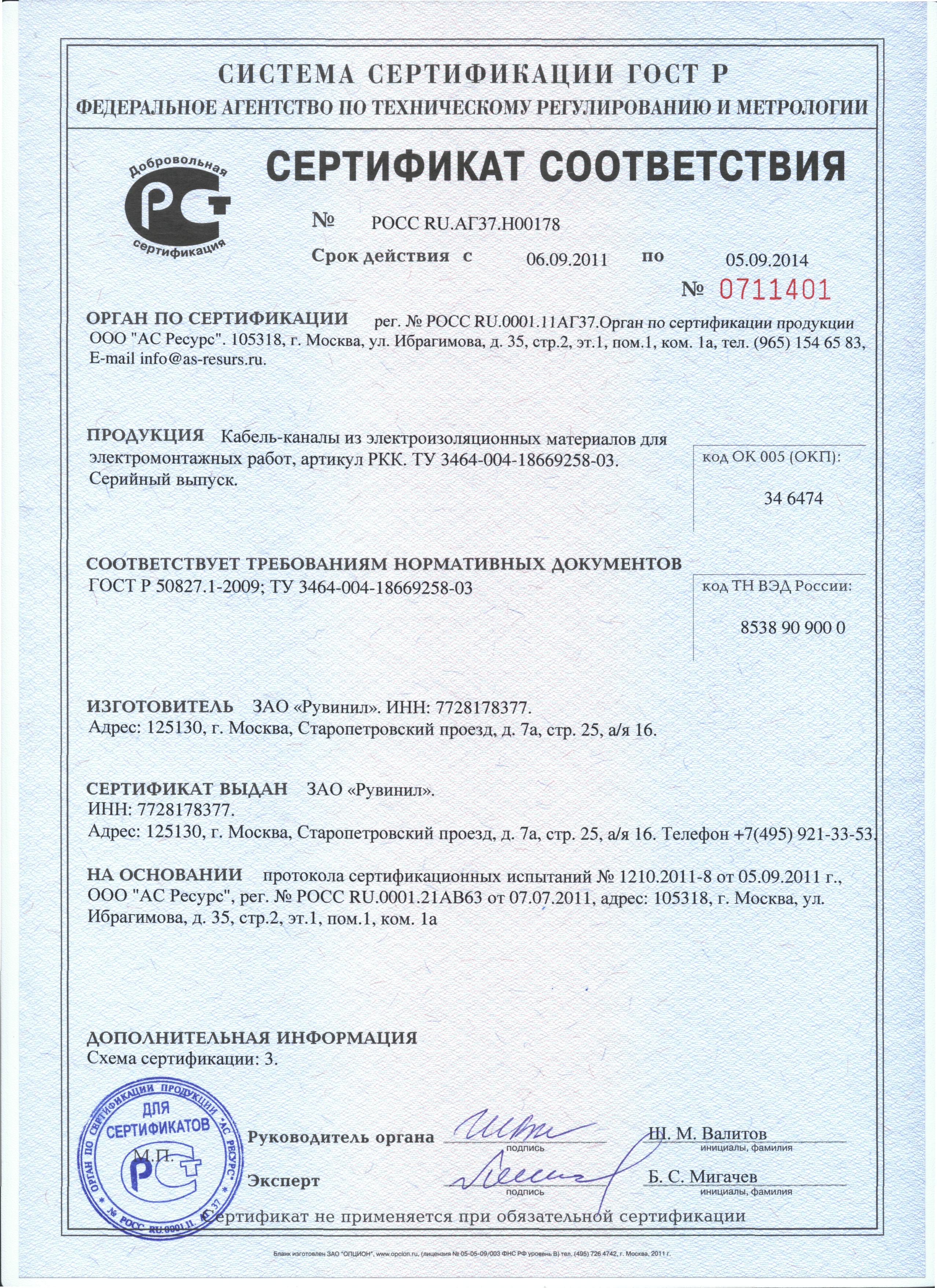 Соответствия Кабель-канал Рувинил 06.09.11 05.09.14