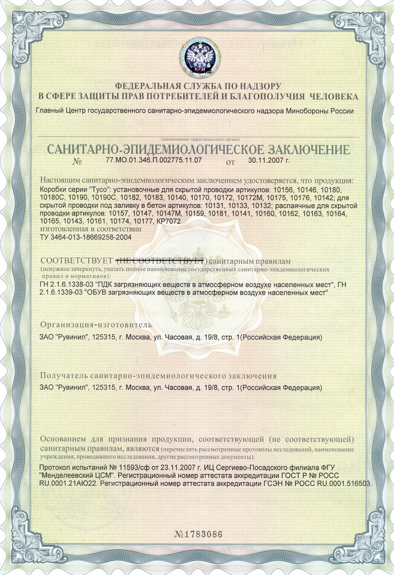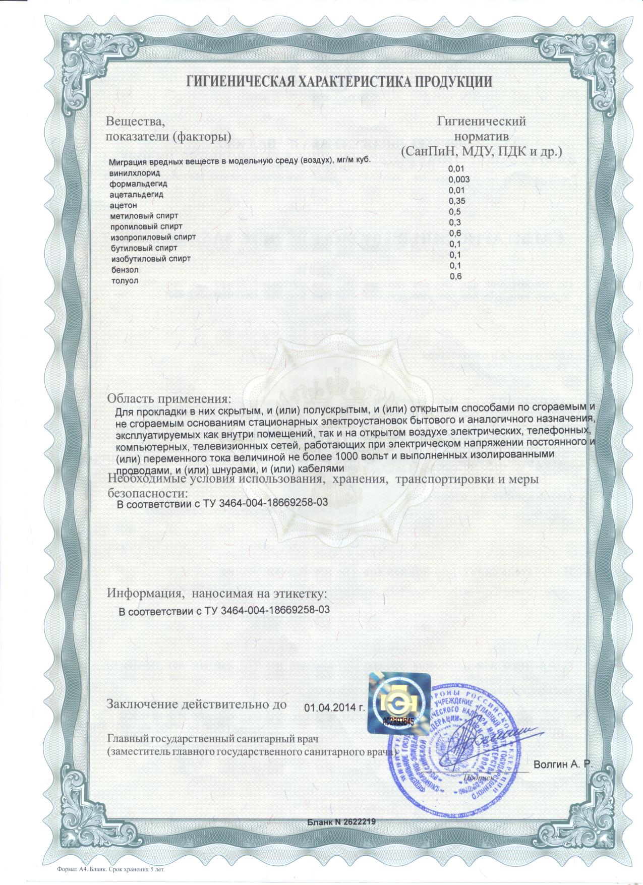 Гигиенический 2 Кабель-канал Рувинил Санитарно-Эпидемиологическое заключение 31.03.09 01.04.14