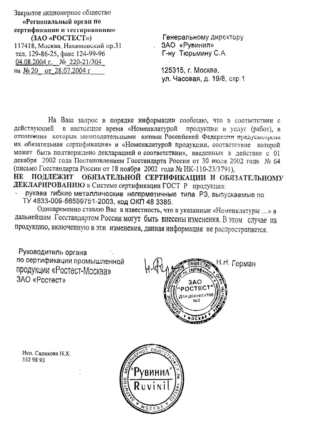 Отказное письмо Отказное на Металлорукав   . .   . .
