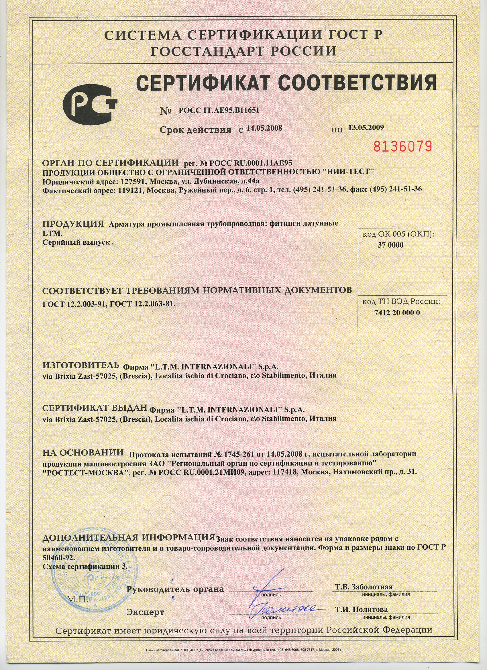 Соответствия Фитинги LTM 14.05.08 13.05.09