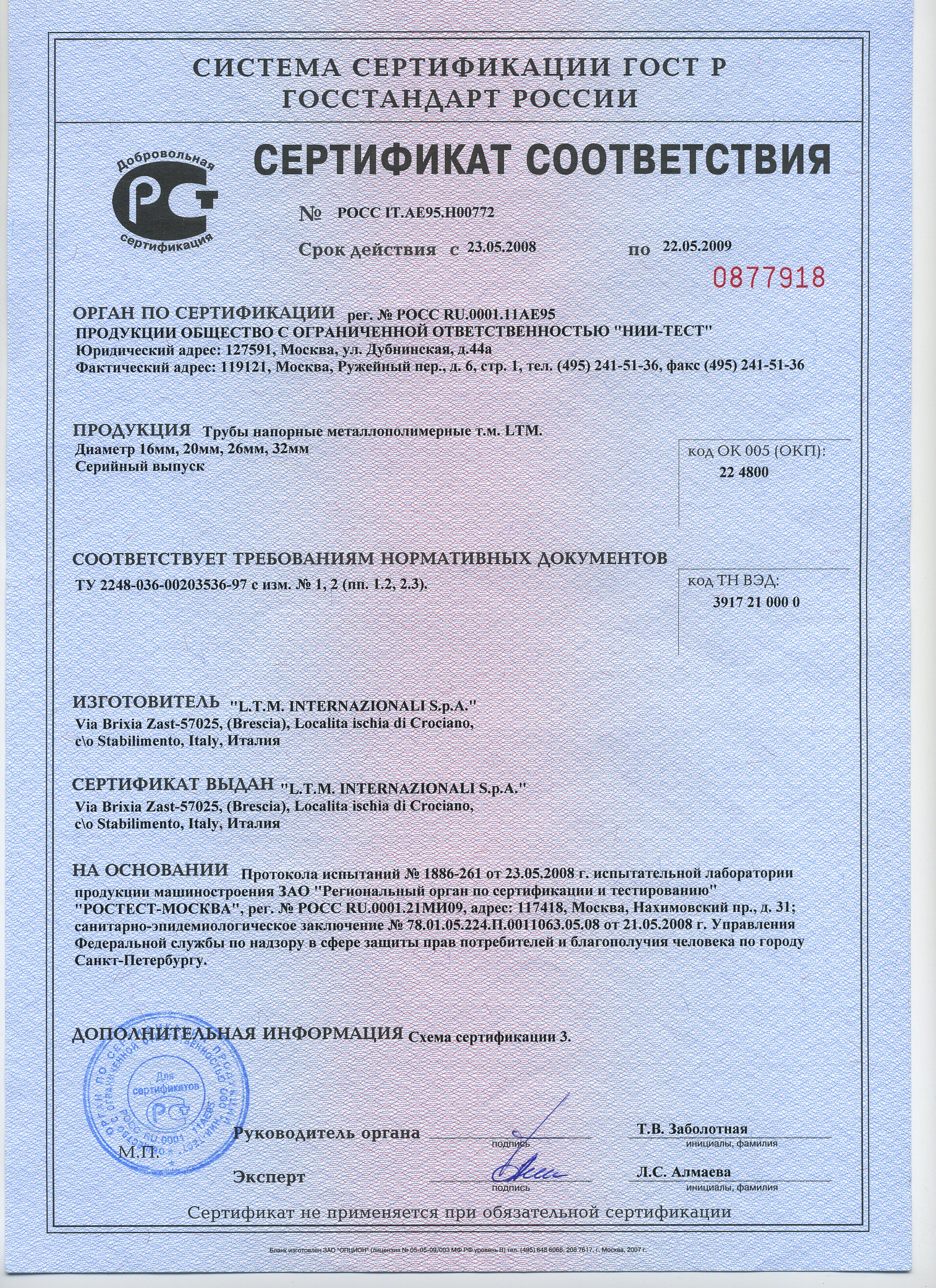 Соответствия Труба AQUALINK 23.05.08 22.05.09
