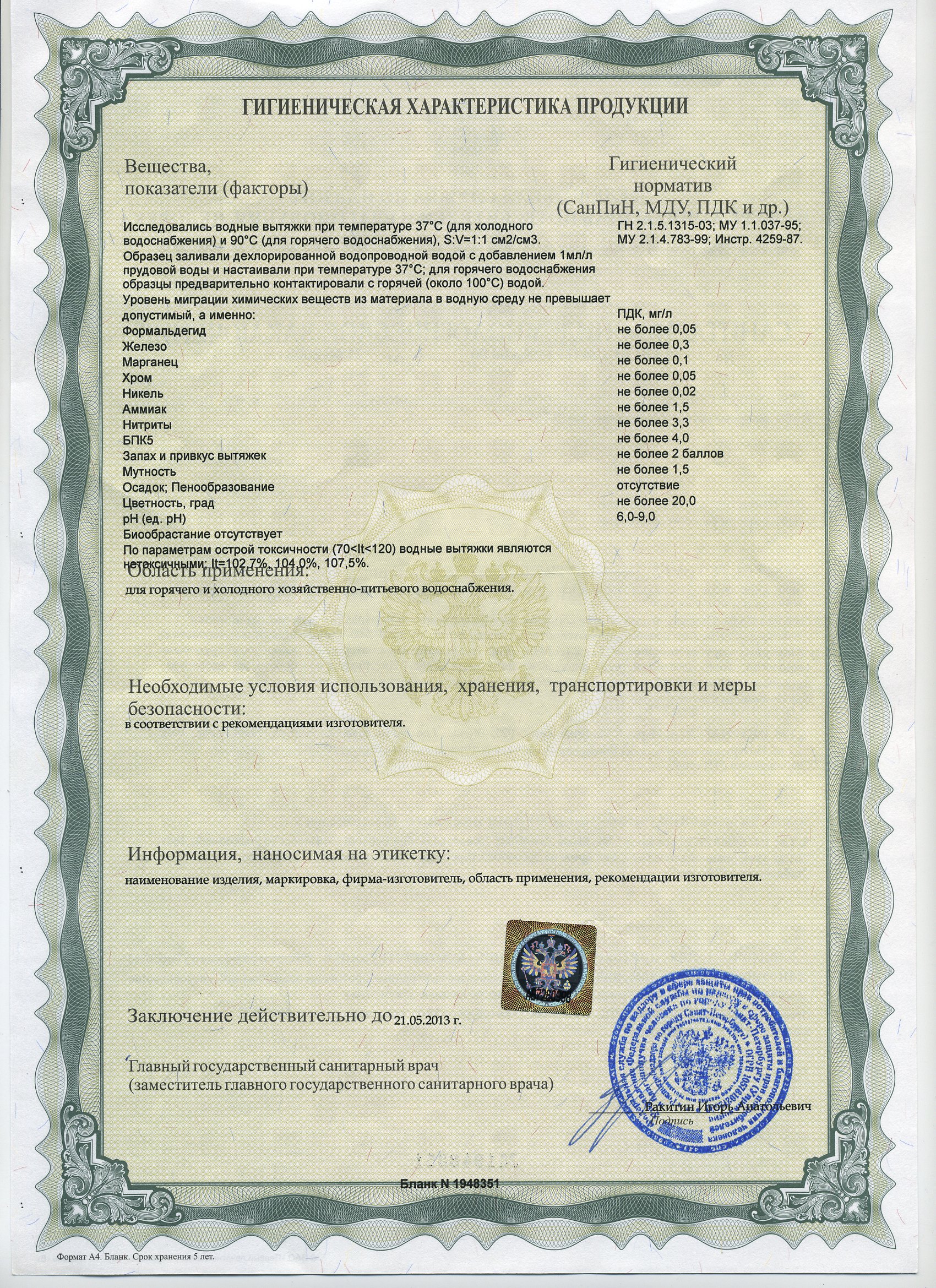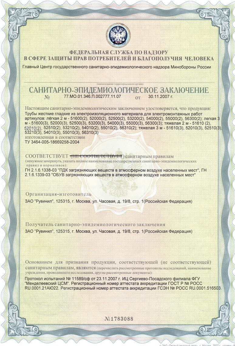 Гигиенический 2 Трубы гладкие из НПВХ Ø16-63 Рувинил 30.11.07 30.11.12