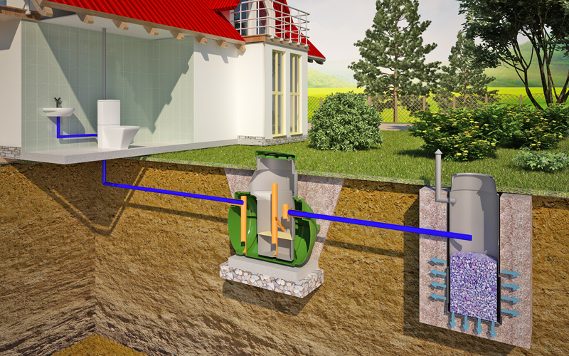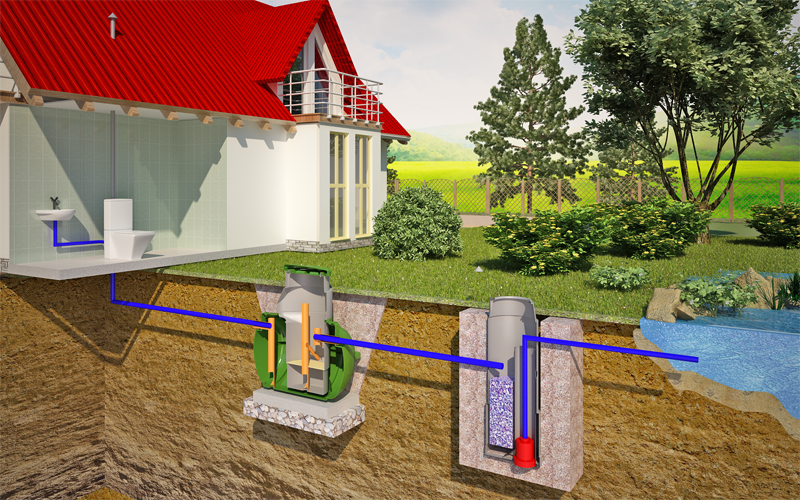 • 6. Заполнить септик чистой водой, в начале заполняется фильтровальная камера, потом приемная.