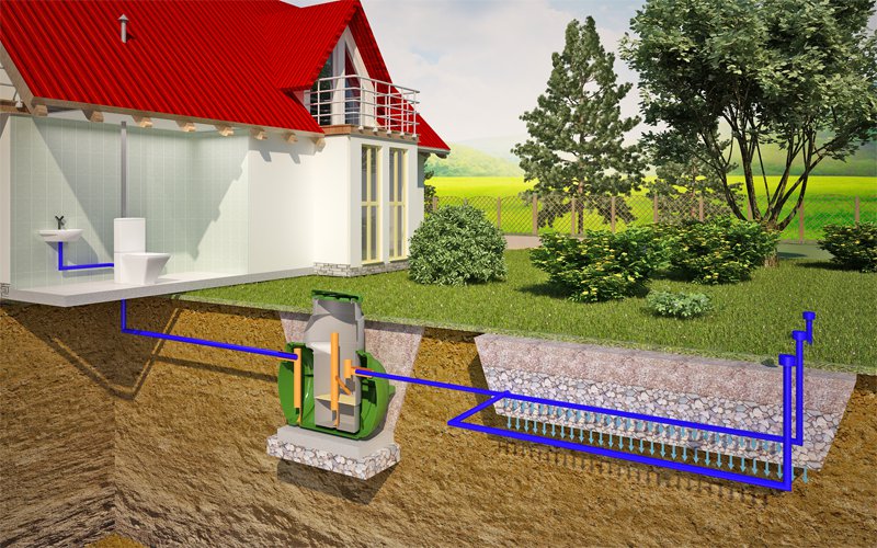 При осуществлении доочистки сточных вод поступающих из септика "Росток", площадь поля подземной фильтрации в песчаных грунтах составит примерно 12 м2. Поле подземной фильтрации состоит из сети распределительных и перфорированных оросительных труб, укладываемых на глубину 0,5-1,2 м от поверхности земли (в зависимости от глубины промерзания грунта). Расстояние от труб до уровня грунтовых вод должно быть не менее 1 м. Оросительные трубы прокладываются в виде ответвлений длиной до 20 м от распределительного трубопровода. Под трубами предусматривается подсыпка слоем около 200 мм и шириной 250 мм из щебня, гравия или спекшегося шлака, при этом труба погружается в подсыпку на половину диаметра. Для притока воздуха на концах оросительных труб предусматриваются вентиляционные стояки диаметром 110 мм.